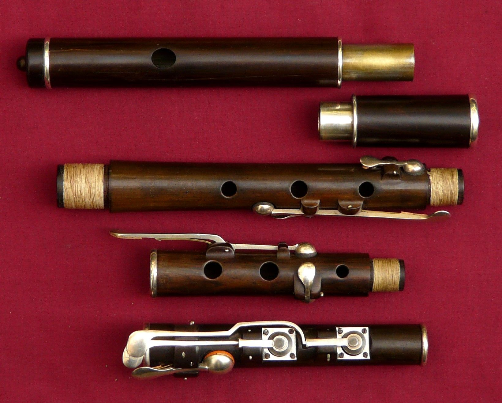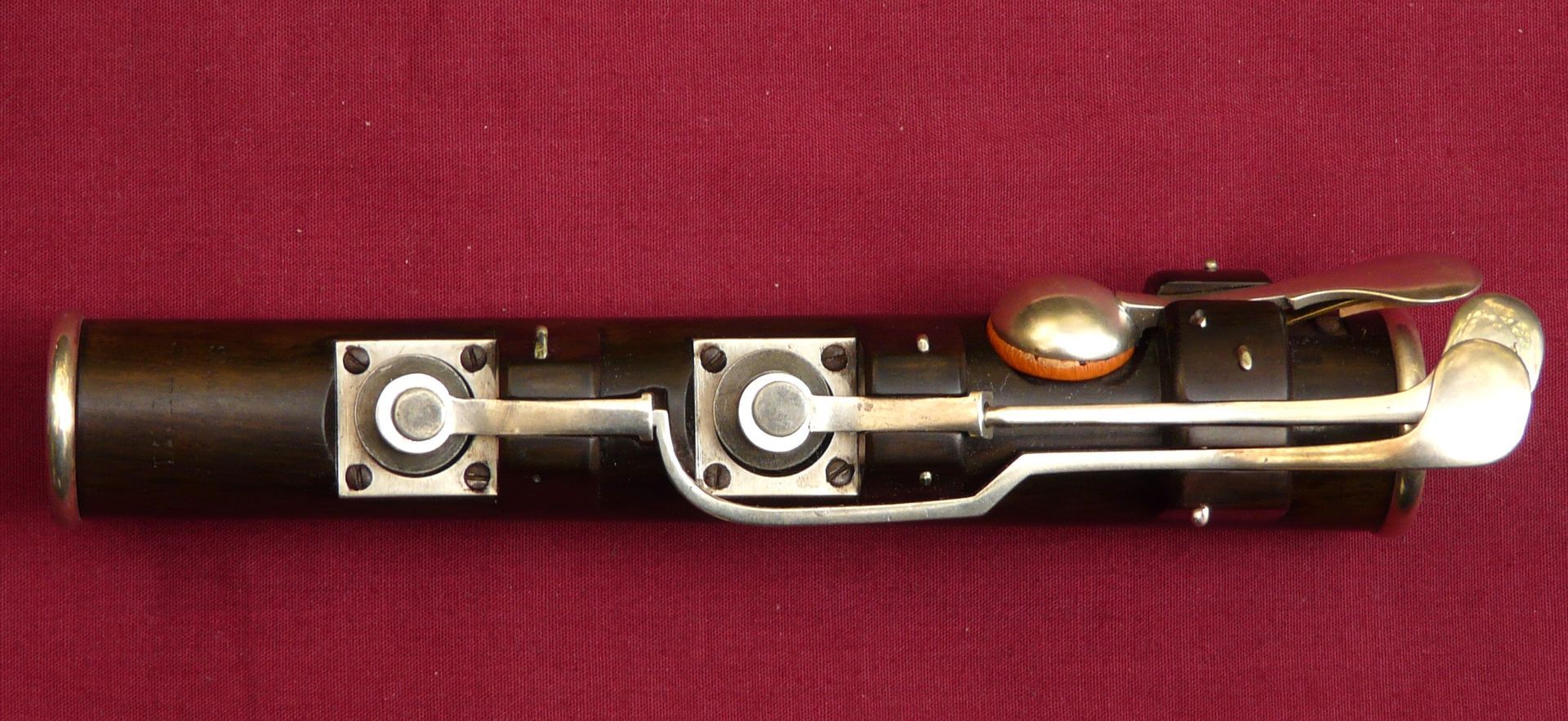 Rudall & Rose 1832 conical ring key, early example, cocus with silver mechanism