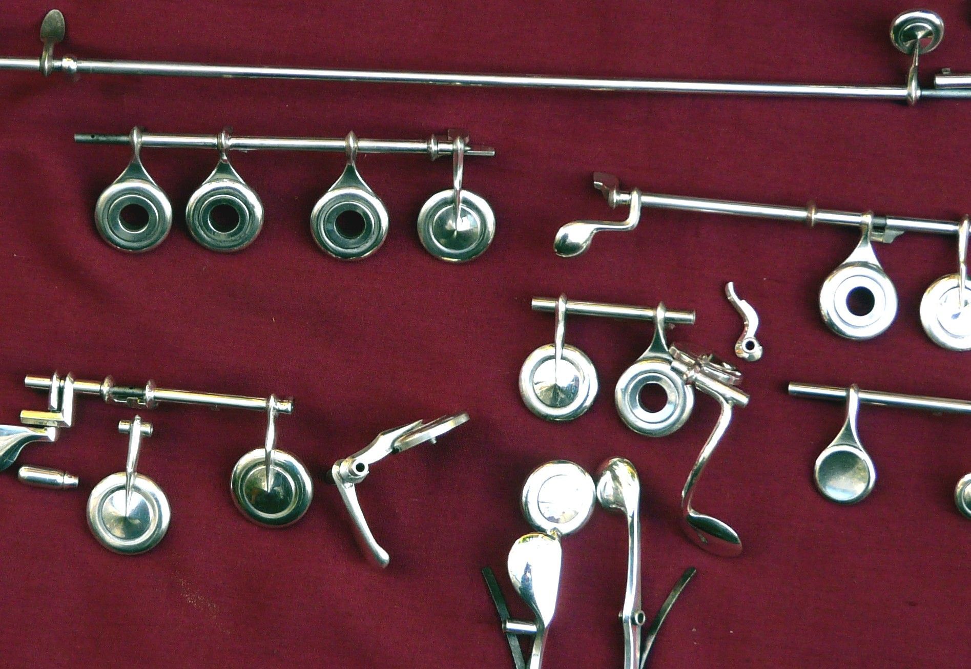 Firstly we removed all keys from the tubing and repaired as necessary. We converted the five fingered keycups to open-hole and turned Delrin grommets on our lathe. Then we fitted all the keys to either new silver tubing or replacement original Rudall Carte silver tubing. Much of this was silver soldered for extra strength (originally it was lead soldered, and these joints can deteriorate with age). In remaking the mechanism we were able to eliminate all play so the keys feel immediate and reliable under the fingers, and the player can have complete confidence in the flute.