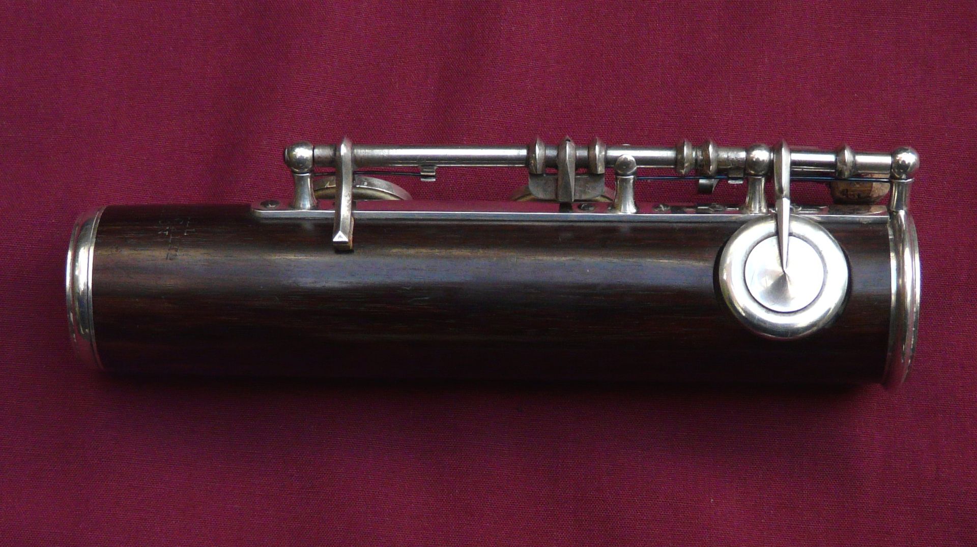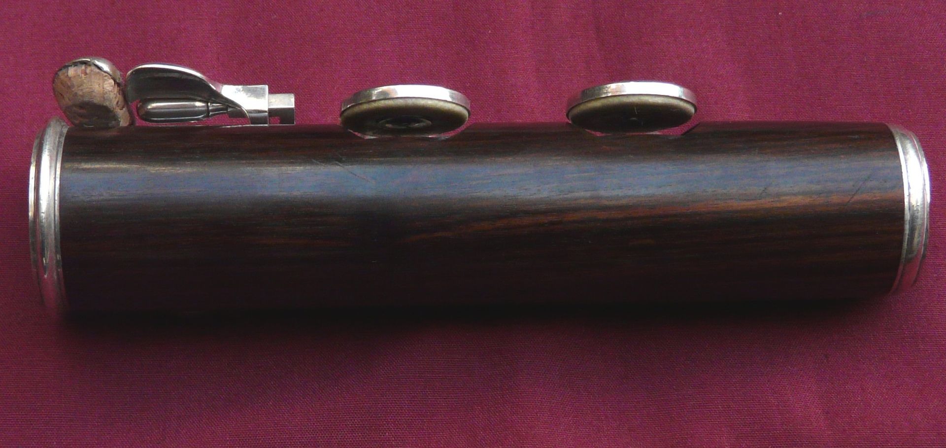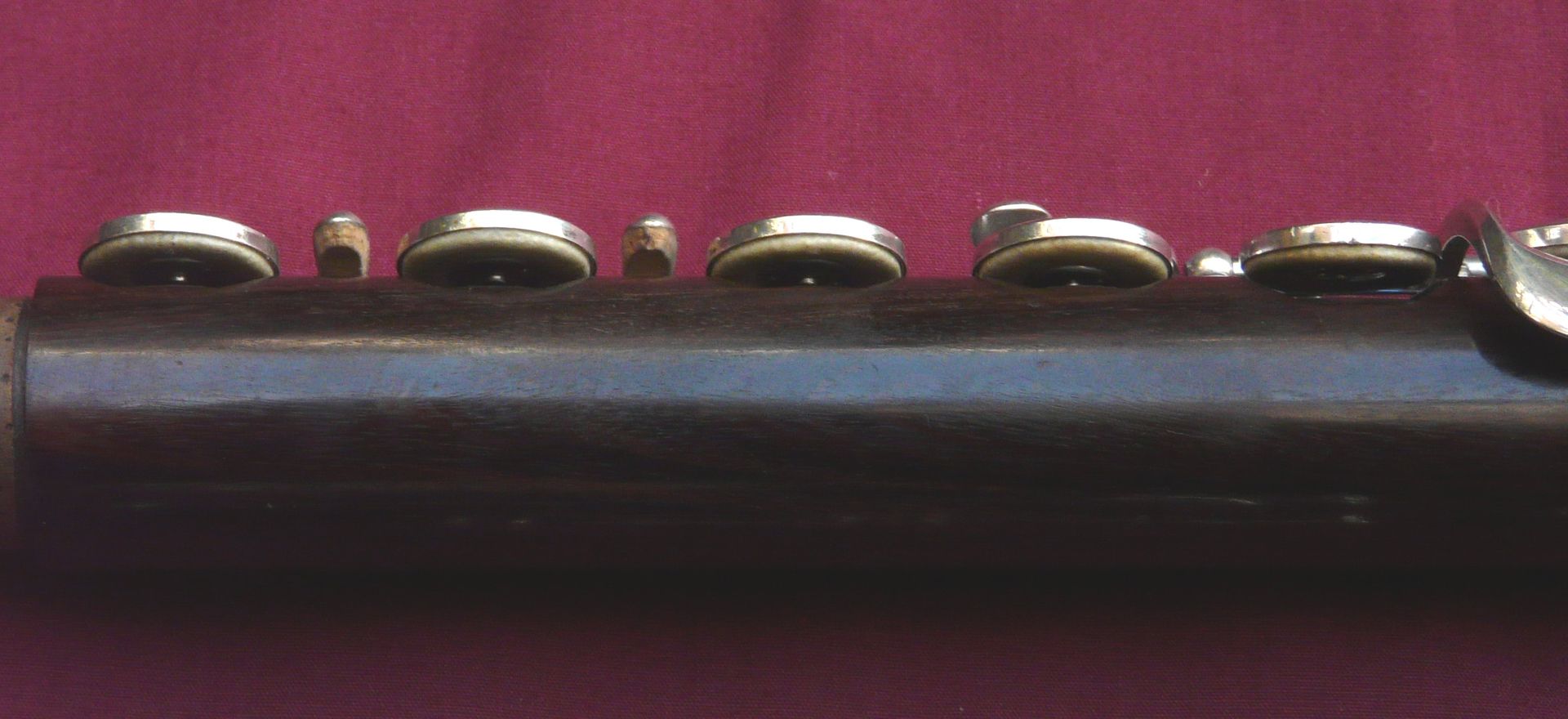 This flute is in excellent condition. The wood of body and foot is unblemished. Padding is old but still works well. The silver-lined headjoint features an ebonite lip-plate, which gives good articulation. There is an old repair to a crack away from the embouchure hole, not affecting playing. We have serviced the flute ready for sale.