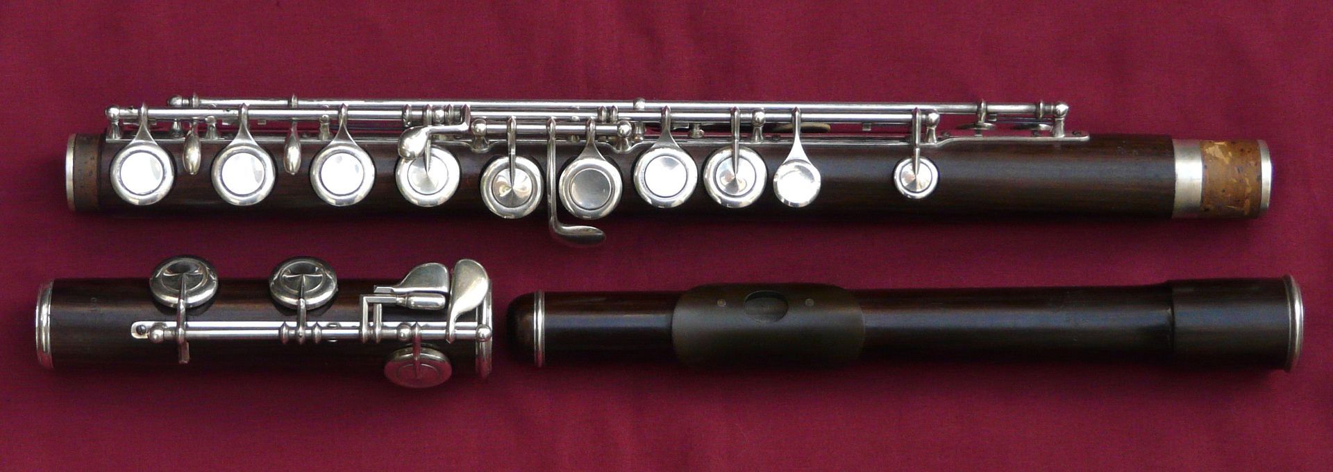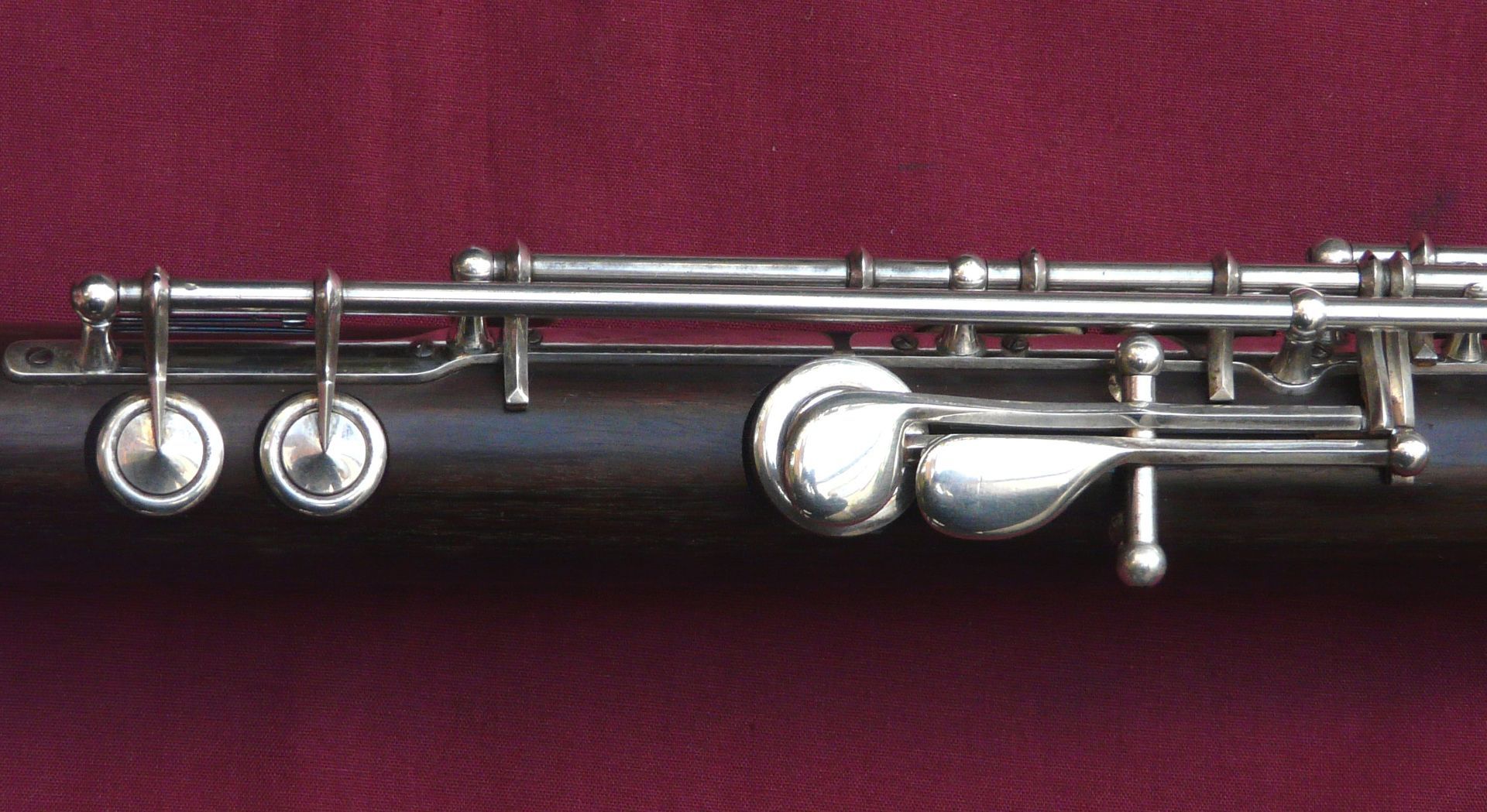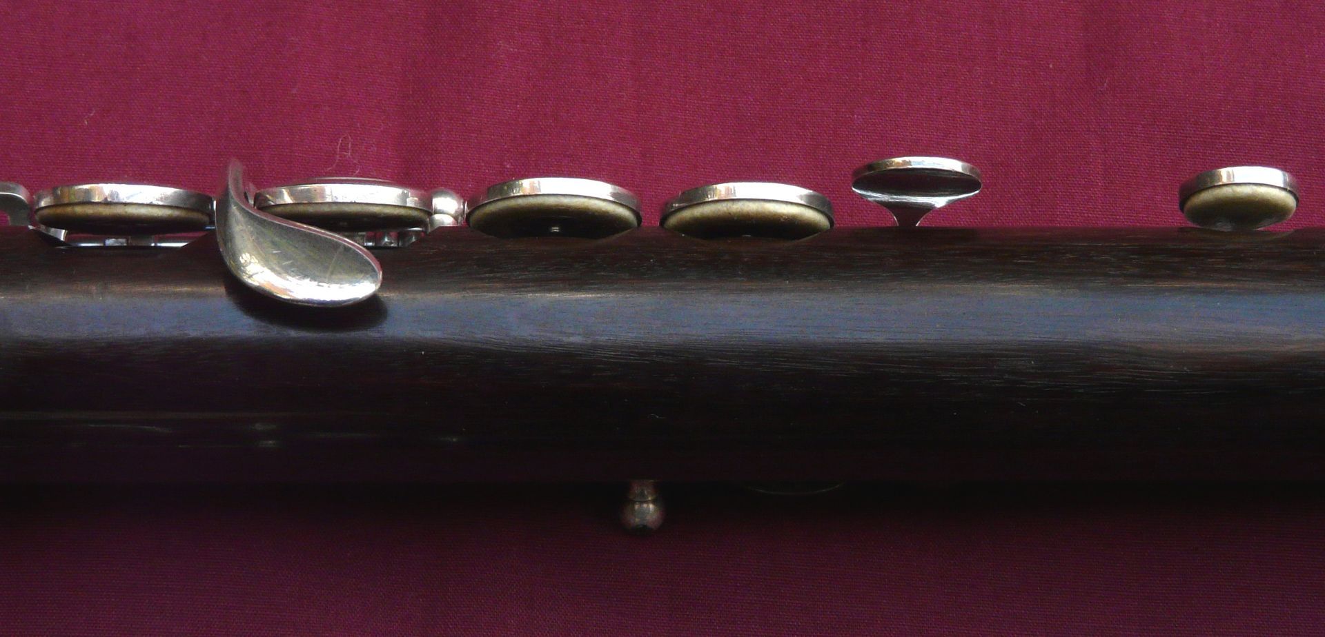 This flute is in excellent condition. The wood of body and foot is unblemished. Padding is old but still works well. The silver-lined headjoint features an ebonite lip-plate, which gives good articulation. There is an old repair to a crack away from the embouchure hole, not affecting playing. We have serviced the flute ready for sale.